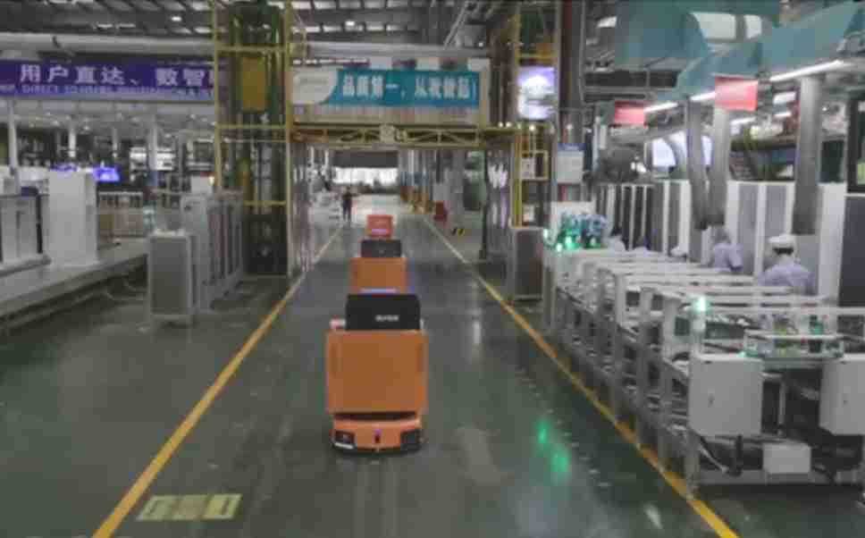 为车载冰箱物流配送打造的智能解决方案,,包含产中物流通过潜伏举升AMR搬运至线边,,产后成品物流智能仓储,,,流程包含产中物流智能齐套入库,,线边安灯叫料AMR智能配送至线边,,成品入库、、出库,,通过无人堆高车机器人,,智能仓储管理替代人工作业管理,,,实现更高存储、、、、更高效率、、、更具柔性化的解决方案。。